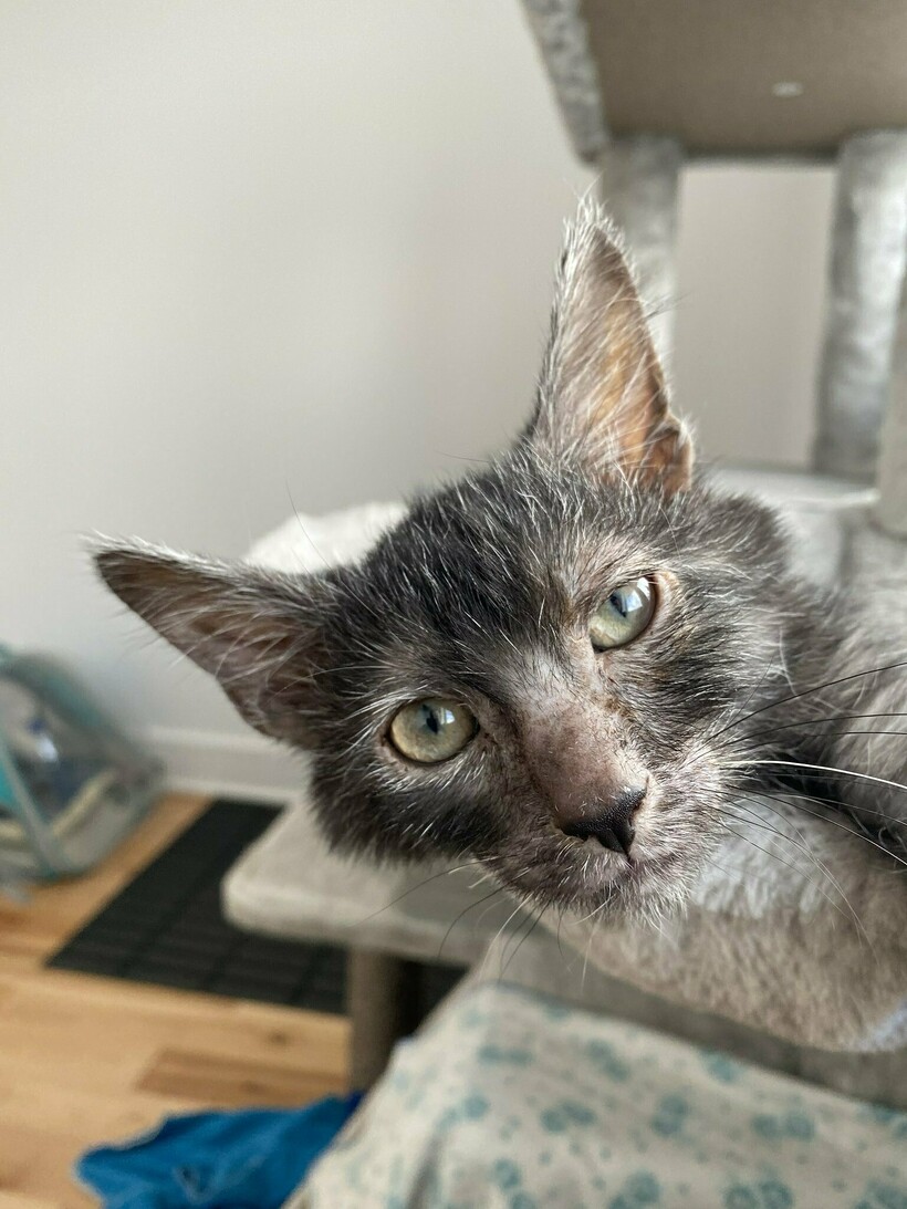 Во время линьки весь шерстяной покров выпадает и полностью меняется. Облысевшие места выделяют липкий секрет, и поэтому за ними нужен особый уход. Хозяину приходится регулярно купать кота или протирать влажными салфетками.