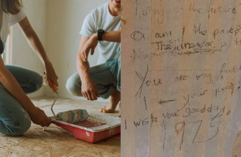 Таинственное стихотворение, которое семья обнаружила на стене в одной из комнат во время ремонта.