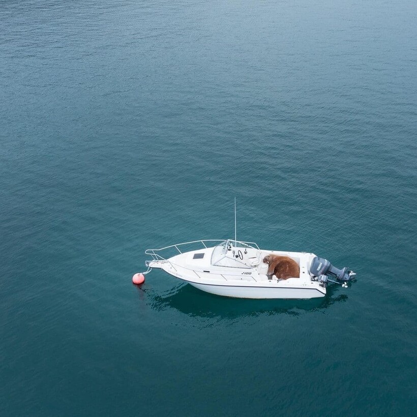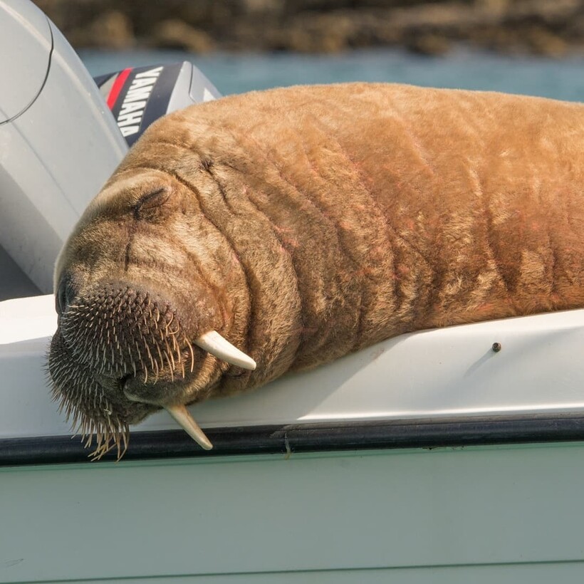 У Валли есть любимые места отдыха. И нет, это не Французская Ривьера, как вы могли подумать, а лодки, которые стоят у пристани. Морж ловко в них забирается, чтобы перевести дух и набраться сил перед следующим путешествием. С момента первой встречи с людьми Валли проплыл уже 4 тысячи километров и оставил за собой далеко не одно сломанное судно. Еще бы: все-таки 800-килограммовое тело не так-то легко уложить на лодку с комфортом.