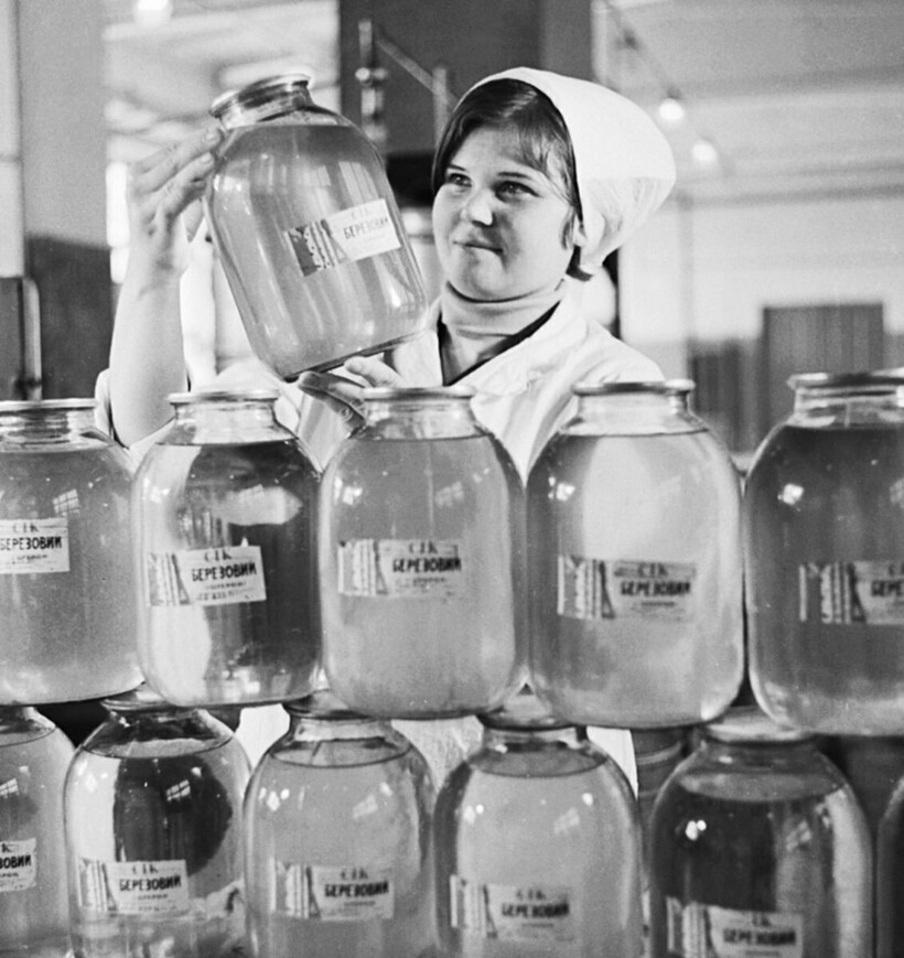 Так и появились известные всем березовый, яблочный и томатный соки. Первый пользовался особой популярностью, однако в результате простых вычислений выяснилось, что страна попросту не могла производить столько продукта. Так, если каждый советский гражданин в среднем пил 5 литров этого сока в год, то в производстве участвовало бы 8 млн деревьев, а рощ таких масштабов, доступных пищевым промышленникам, в стране попросту не было.