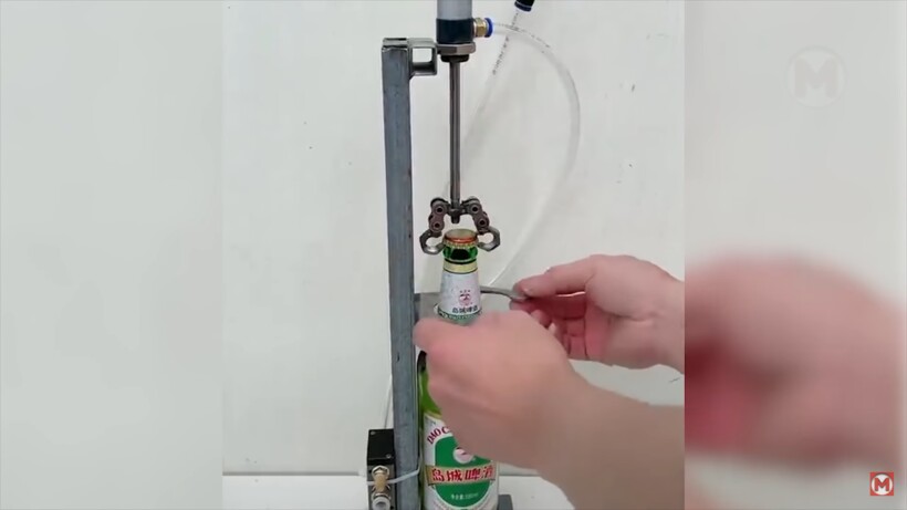 Все хотя бы раз сталкивались с такой ситуацией: вы не глядя покупаете бутылку газировки в магазине, и уже по пути обнаруживаете, что ее горлышко украшает крышка без резьбы. А это значит, что открыть бутылку будет невероятно сложно. У этой проблемы есть решение. Вам нужно будет один раз потрудиться, чтобы потом отдыхать всю жизнь. Мужчина создал невероятно сложное устройство, которое при нажатии на кнопку обхватывает бутылку газировки и срывает с нее крышку специальными щипчиками. Возможно, этому мужчине никто не сказал о том, что можно просто купить открывашку.