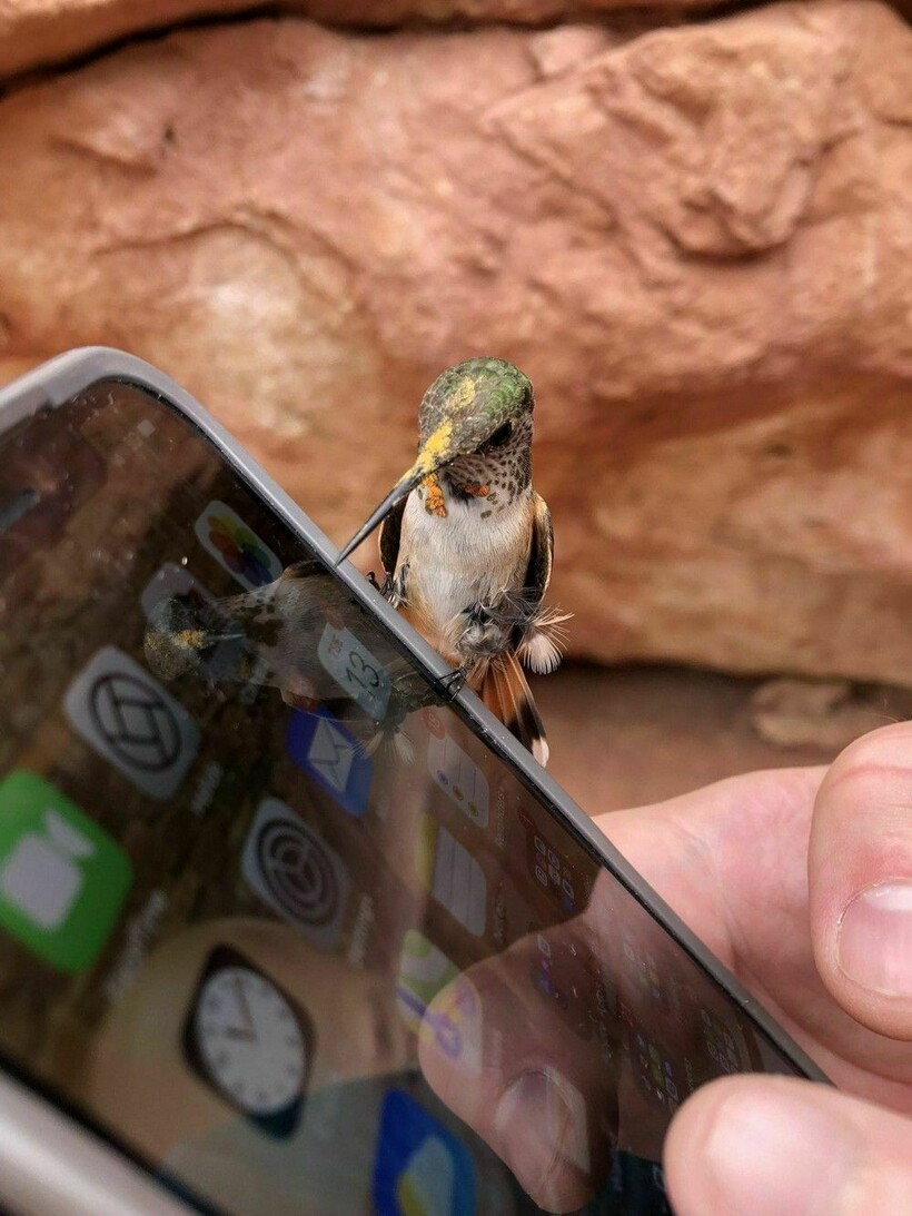 Телефон теперь под контролем внезапно прилетевшей колибри