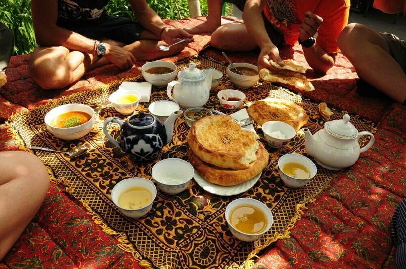 На застольях и праздниках главным кулинарным блюдом является мясо. В силу того, что выращивать скот там довольно трудно, мясо едят редко и лишь по знаковым событиям. Типичный завтрак памирца состоит из хлеба, масла и чая. В конце лета и в начале осени доступны абрикосы, сливы, грецкие орехи и миндаль.
