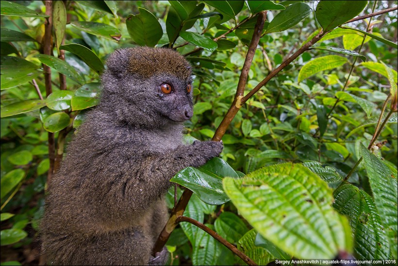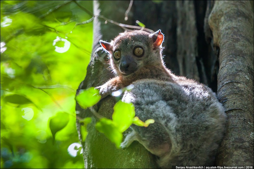 Этого ночного лемура с почти ничего не видящими днем глазами случайно увидели в больших Цингах