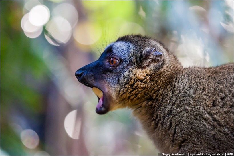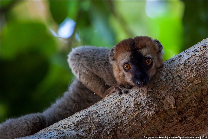 Это один из наиболее распространенных лемуров на Мадагаскаре - варика, или обыкновенный бурый лемур.