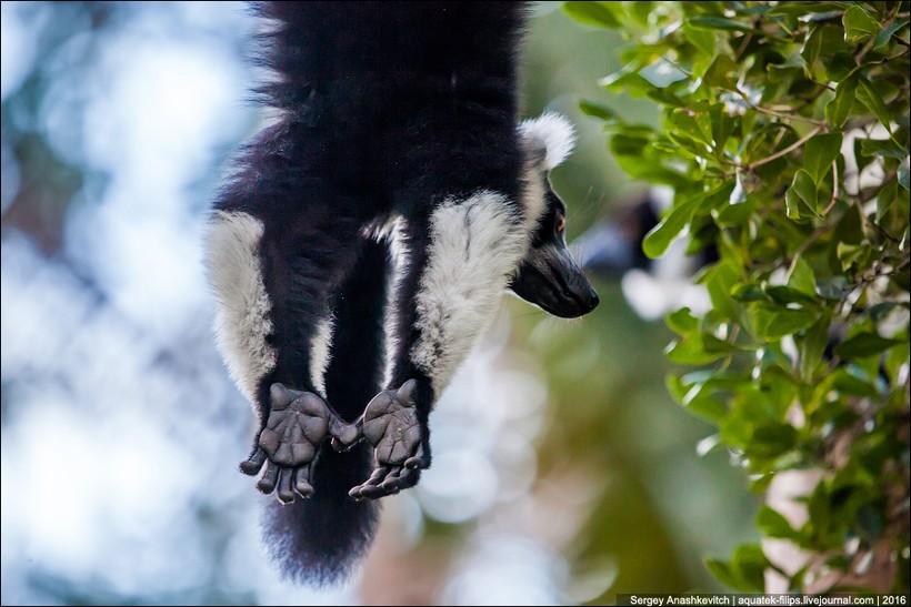 Один из самых забавных и активных лемуров - вари. Вот уж кто любимец публики!