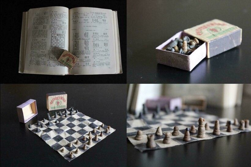 Шахматные фигурки были изготовлены в 50-х годах прошлого века из туалетной бумаги, засушенного хлеба и обувной пасты. К слову, в нашем прошлом посте мы рассказывали, как делают мыло ручной работы в Палестине.