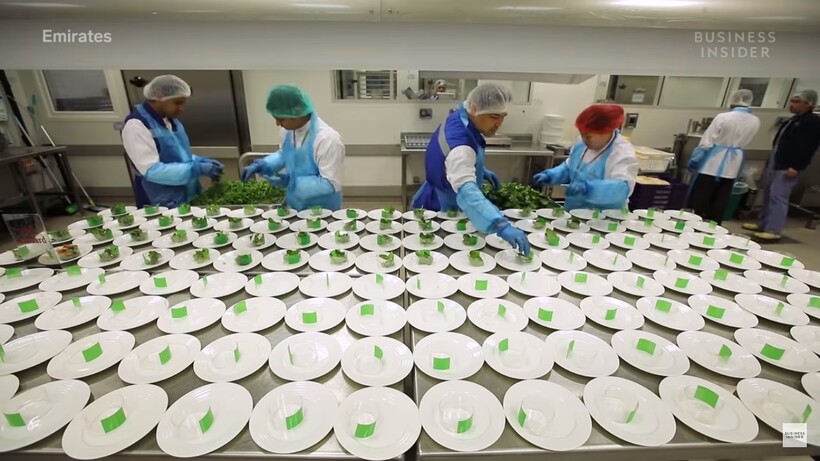 Но задумывались ли вы когда-нибудь, откуда берется вся эта пища на борту? Кто, как ее готовит и доставляет на самолет? Как составляется меню и почему еда всегда свежая? Об этом рассказывают авторы видеоролика внизу на примере Emirates Flight Catering (EFC), компании, которая готовит по 110 000 000 блюд в год для арабских авиалиний.