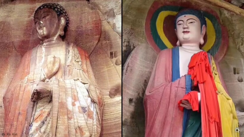 В 2018 году в китайской провинции Сычуань решили отреставрировать одну из статуй Будды. Этой статуе было более тысячи лет. Специалист, которому поручили привести статую в порядок, по неизвестным причинам окрасил нимб над головой Будды во все цвета радуги, несмотря на то, что по всем правилам он должен быть однотонным. А какую статую из подборки, на ваш взгляд, реставрация испортила больше всего?