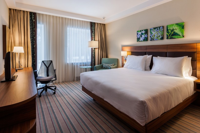 Отель располагает 164 комфортабельными номерами со всеми необходимыми удобствами: комплиментарный чай и кофе, беспроводной доступ в интернет, удаленная печать документов, кровать с уникальным матрацем The Sleep Garden Inn System™ от компании Natural Form™, HD телевизор с выбором международных каналов, цифровой сейф, фен, минихолодильник, телефон с голосовой почтой. Сейчас стоимость номера начинается от 4600 руб. за ночь. К тому же гостей Hilton Garden Inn Moscow New Riga ждут различные скидки и специальные предложения, которые сделают цены еще приятнее.
