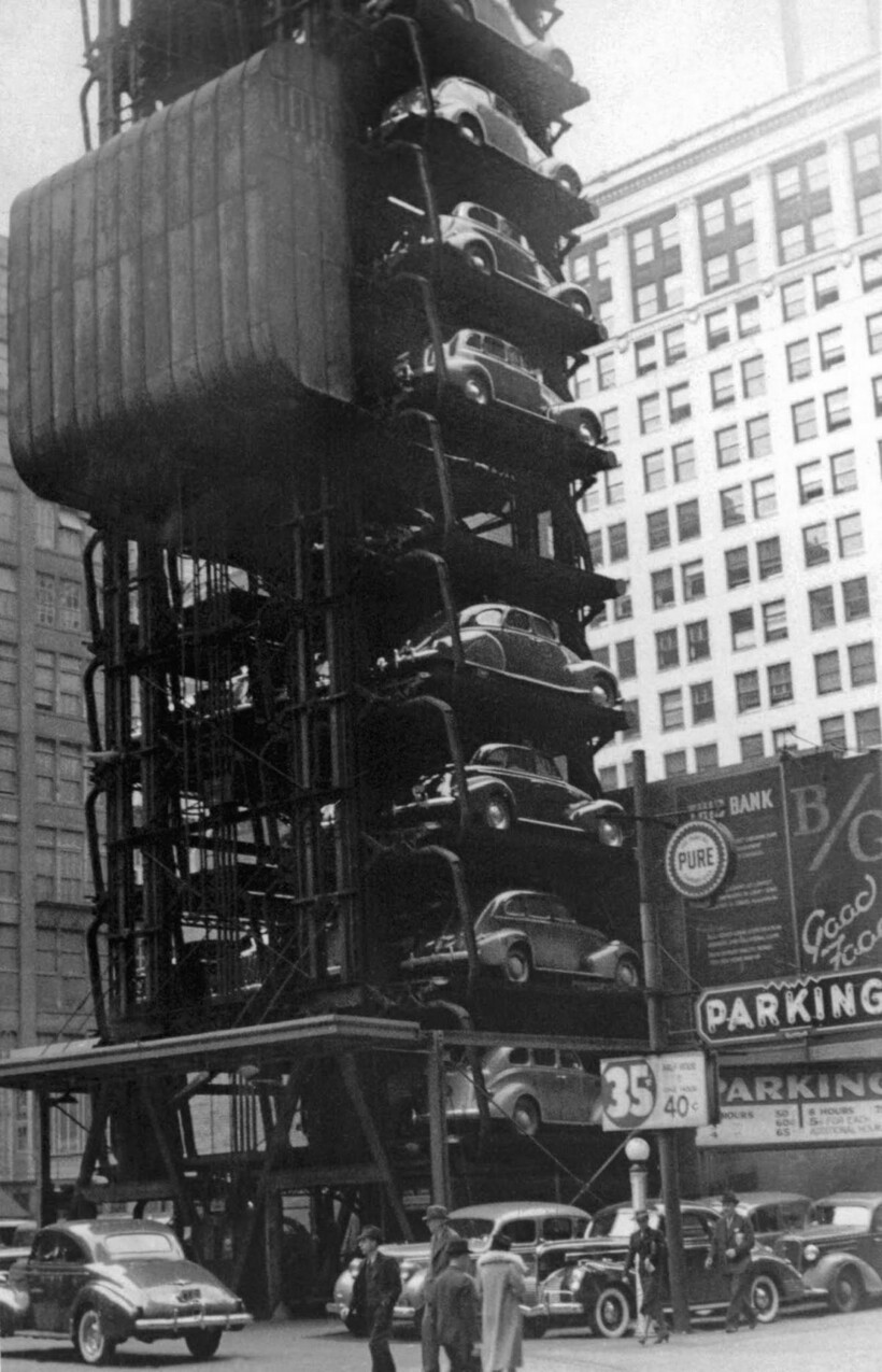 А к 1960-м годам появились автоматизированные парковочные системы на сотни автомобилей