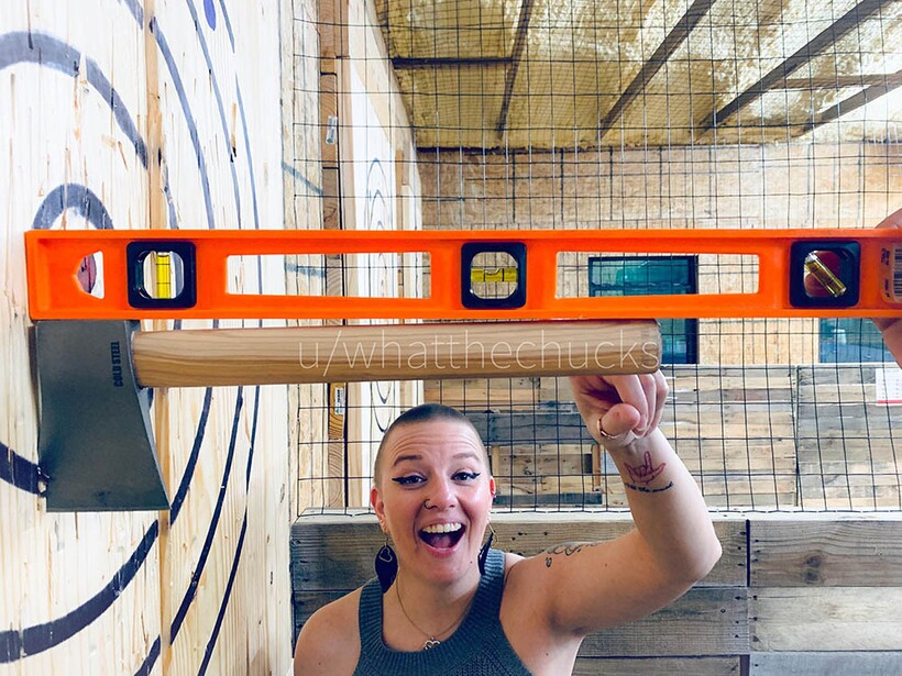 Топор попал в цель под прямым углом