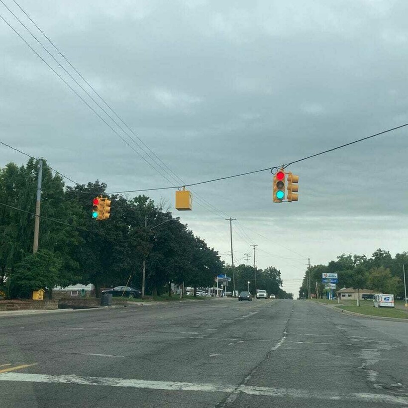 Светофор одновременно показывал красный и зеленый свет.