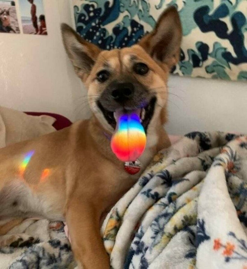 Лучик света окрасил язык пса яркими красками