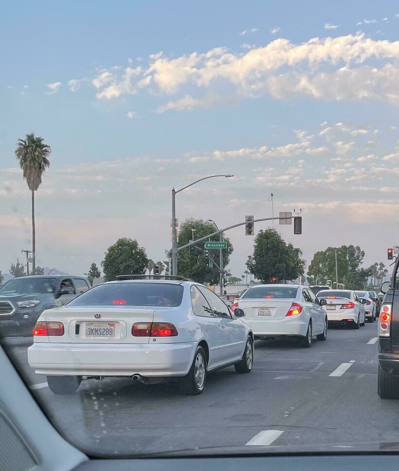 В пробке водитель приметил, что в левом ряду все 4 поколения Honda Civic выстроились в порядке их выпуска и были идентичны по цвету.