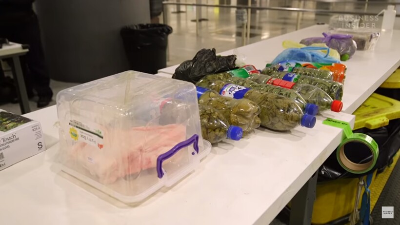 В видеоролике показано, как только из пары чемоданов одной семьи была изъята масса виноградных листьев, конская колбаса и корни растений, которые люди планировали посадить в США. Безобидные товары могли стать опасными для национального хозяйства или для здоровья американцев. Есть два способа утилизации таких продуктов: измельчать или сжигать. Но прежде чем утилизировать продукты, сотрудники аэропорта исследуют их на наличие болезней, насекомых или червей. Все найденные образцы отправляются в министерство сельского хозяйства США для дальнейшего анализа и расследования.