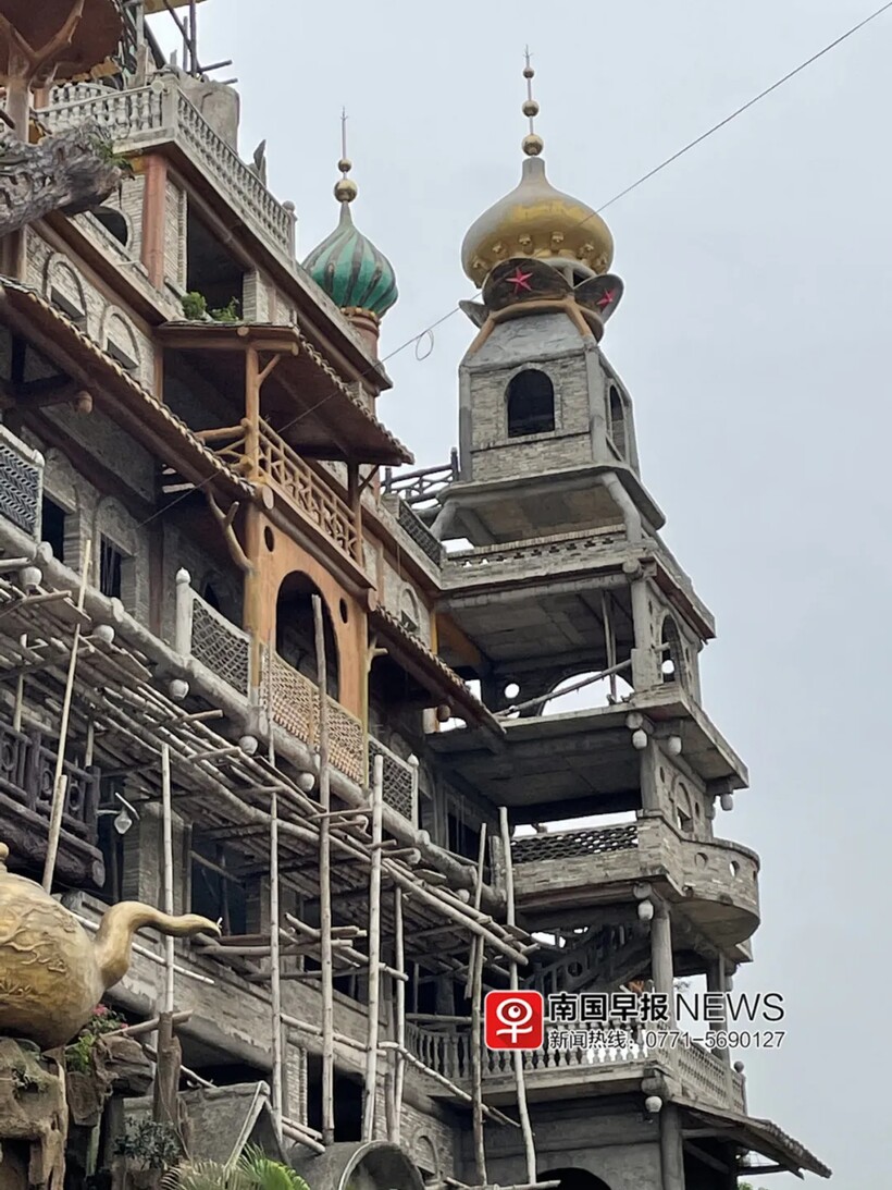 «Архитектурный винегрет» ― именно так можно назвать странный дом в маленьком городке Синьсю в провинции Гуанси в Китае. Уже несколько лет над ним трудится фермер, воплощая в десятиэтажном чудовище самые разные стили.
