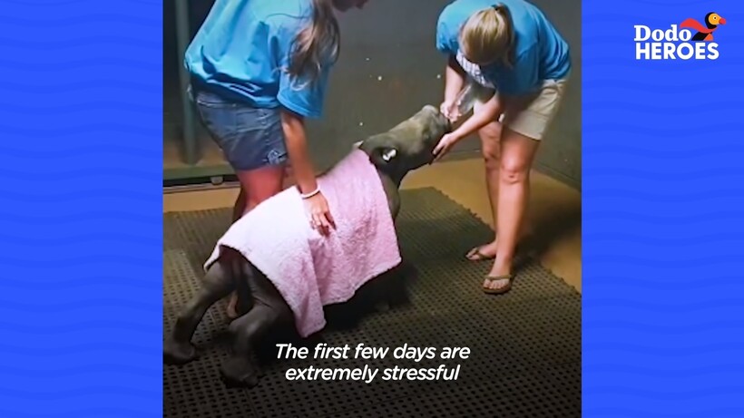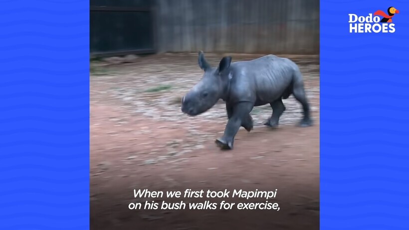 Как рассказывает женщина, в первые несколько дней маленький носорог вел себя очень беспокойно. Он только лежал и звал маму, отказываясь от пищи. Чтобы покормить детеныша, люди завязывали ему глаза и подносили соску с молоком. Они прозвали носорога Мапимпи и решили сделать все возможное, чтобы он выжил. Уже через несколько дней малыш привык к людям и их заботе, он проводил с ними все время.