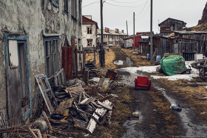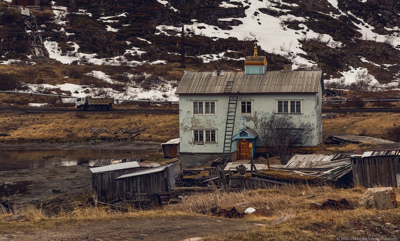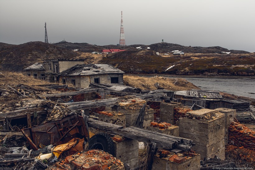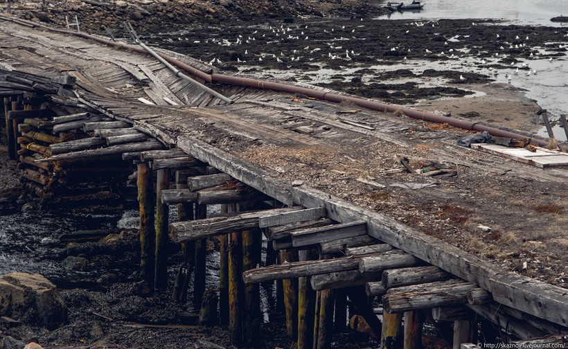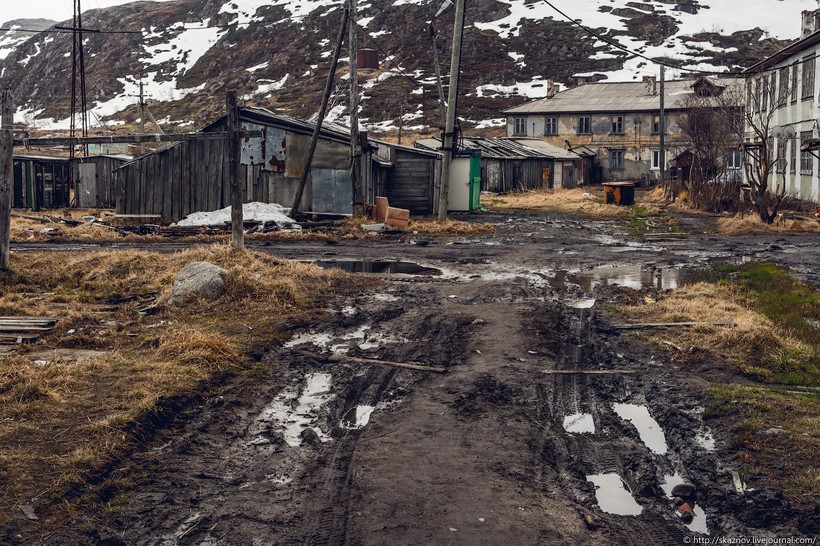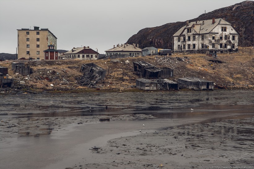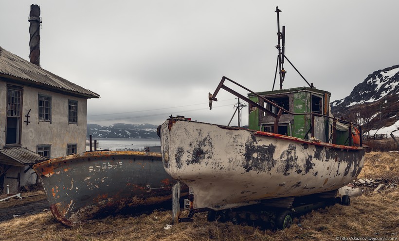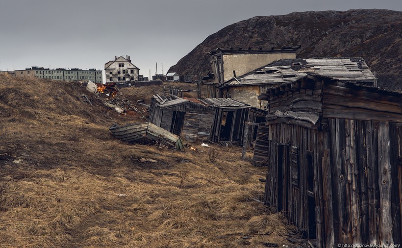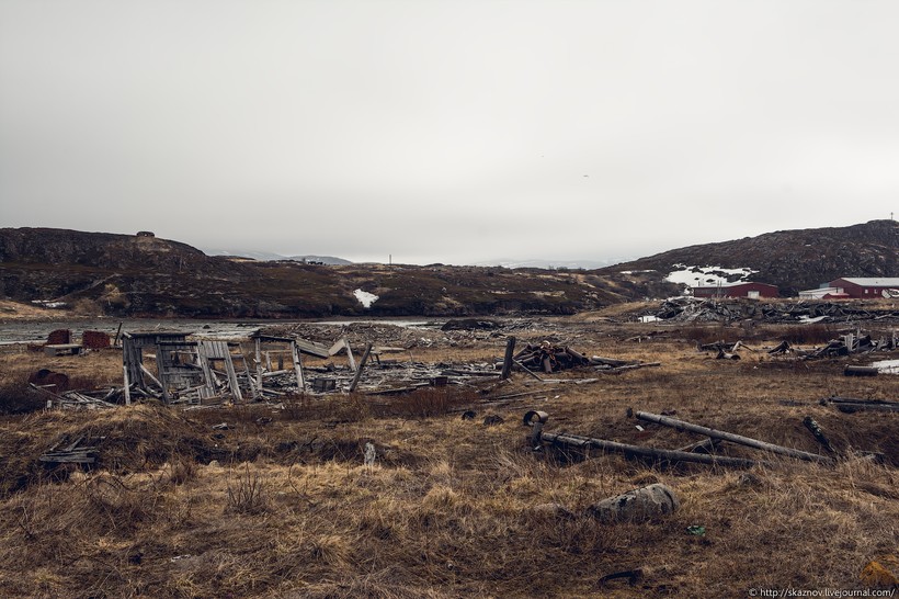 Если бы на Земле прошла ядерная война, то, спустя сто лет, именно здесь можно было снять воспоминания про апокалипсис...Заранее скажу, что не эти виды были целью моего путешествия, они скорее прилагались...как эхо безнадежности, как отголоски «левиафана». В настоящее время Териберка состоит из двух населенных пунктов: Териберка и Лодейное (Новая Териберка). Начнем со второго, но наиболее интересного, на мой взгляд, населенного пункта.