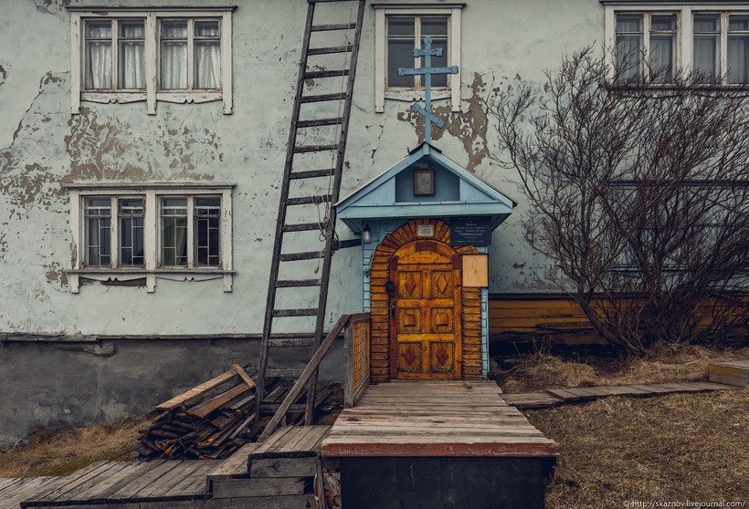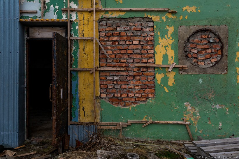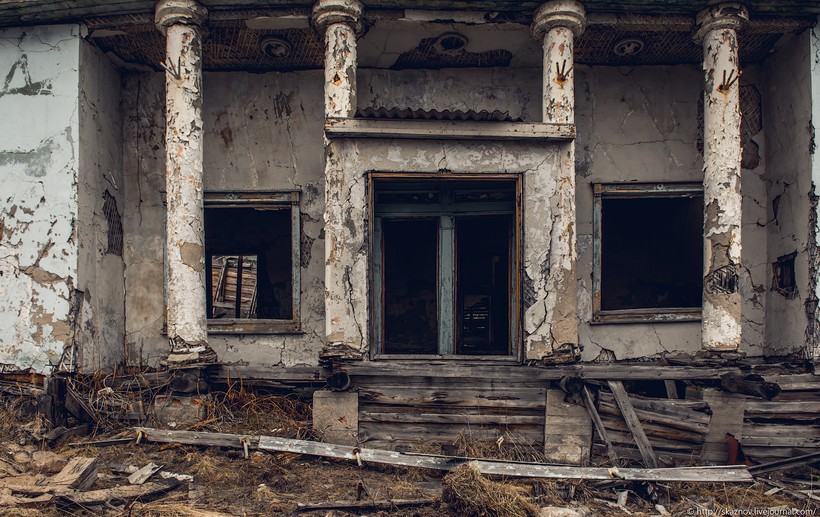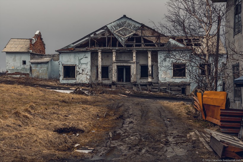 Дом культуры...Картинка из «Сталкера». Внутри ходить можно но не во всех зданиях...риск обвалов тут большой, а до Мурманска 120 км, спасут не скоро.