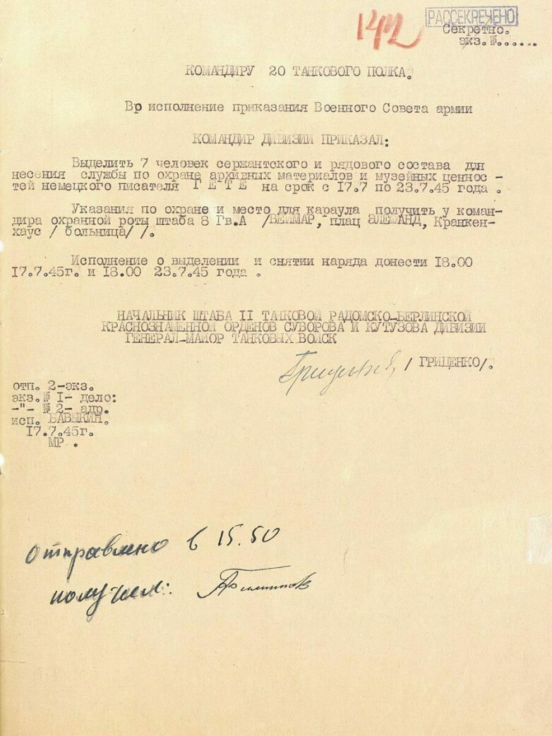 Одно из постановлений о сохранности культурных ценностей — об охране музея И. В. Гете