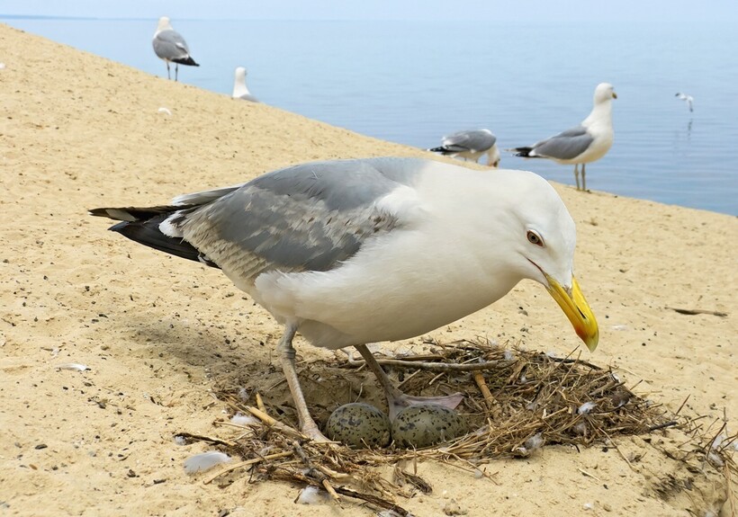 Именно эта пленка, или мембрана, а не скорлупа придают яйцу овальную форму, кроме того, матка птицы имеет такую же форму. Как же создается скорлупа? Карбонат кальция, переносимый кровеносными сосудами, откладывается на мягкой оболочке яйца, где он затвердевает, образуя жесткую скорлупу. Яйца разных птиц могут быть разных цветов, о чем мы рассказывали в этой статье, и цвет зависит от пигмента, который выделяют клетки птицы. Так, у морских птиц яйца пятнистые — они сливаются с галькой и камнями, не привлекая внимание хищников. На все эти процессы, от прохождения по яйцеводу до формирования скорлупы, уходит около 24 часов. Теперь яйцо готово появиться на свет, хотя до появления птенца еще далеко.