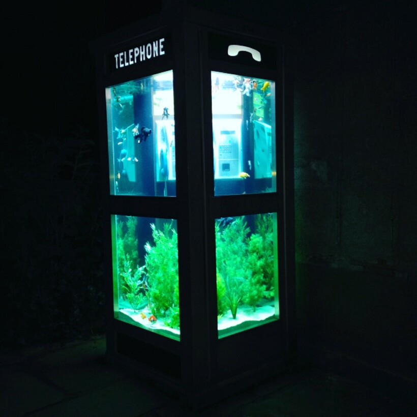 Такой оригинальный аквариум из телефона-автомата сделал художник Бенедетто Буфалино при поддержке Бенуа Дезийе. Повод — «Фестиваль света», проходивший во французском Лионе. Их акваинсталляция привлекла всеобщее внимание. Возможно, после этого успеха такие аквариумные будки стали появляться в Бельгии, на Маврикии и в Японии.