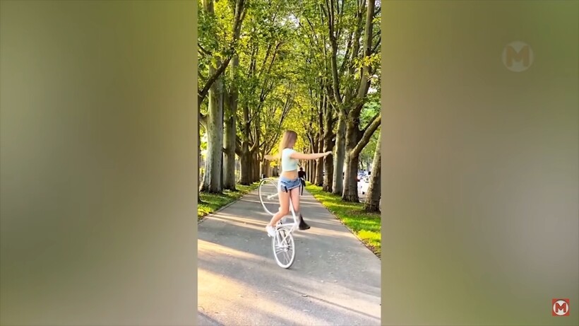 Девушка проделывает невероятные трюки на велосипеде без рук и на одном колесе. Прекрасной незнакомкой оказалась Виола Бранд. Девушка — профессиональный велосипедист-фристайлист, и она часто демонстрирует смелые трюки с балансировкой. Этот вид спорта представляет собой сочетание велоспорта, гимнастики, танцев и акробатики. Его часто называют велосипедным фристайлом и даже велосипедным балетом из-за изысканности, элегантности и креативности, проявляемых исполнителями. Виола — двукратная чемпионка мира и многократная чемпионка Европы в своем виде спорта. Девушка ездит на специальном велосипеде с ременным приводом. На ее зубчатом ремне написан девиз: «Вы должны любить борьбу больше, чем победу». В 2020 году Виола оставила профессиональный спорт, но все еще иногда выступает с целью его популяризации.