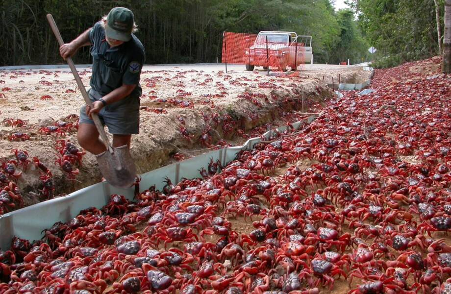 На австралийском острове Рождества регулярно наблюдается нашествие крабов. На первый взгляд кажется, что вся земля покрыта странными камнями красного цвета, которые ни с того ни с сего начинают двигаться. Если приглядеться, становится ясно, что это не камни, а крабы, мигрирующие к океану. Их путь пролегает через весь остров, и на несколько дней они становятся его полноправными хозяевами. Наблюдать такое странное явление можно в сезон дождей. А какое нашествие животных из этой подборки показалось вам самым интересным?