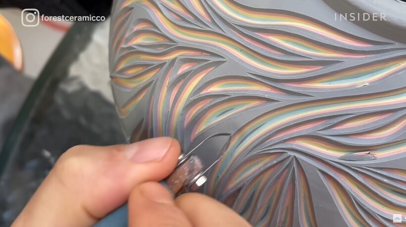Работа двух мастеров поделена на две части: Шон смешивает и наливает слоями фарфор, а Валерий вырезает на нем орнаменты. Кстати, история резчика тоже интересна: он родился в Болгарии и перебрался в США 9 лет назад. Мужчина имел профессию менеджера банковского дела, но ему никогда не нравились цифры, счета и кредиты. Когда он познакомился с Шоном, то решил рискнуть и полностью изменить свою жизнь и деятельность. Так вчерашний офисный планктон стал творческим человеком. Кстати, чтобы творить, не обязательно использовать мрамор или дерево — подойдет даже жвачка, если у вас есть вдохновение и фантазия.