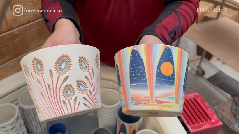 Фирма существует уже 7 лет, и у нее есть свои фанаты и постоянные покупатели. Людям нравится, что каждая ваза, тарелка или кашпо абсолютно уникальны и не имеют аналогов. Всего у владельцев Forest Ceramic Company в наличие более 20 цветов жидкого фарфора, а если их смешивать, то получаются сотни различных вариаций, что делает вид изделия неповторимым. А вы бы хотели иметь в своем интерьере такую необычную вазу? Недавно мы рассказывали о другой необычной технике декора посуды, в которой используется конская грива.