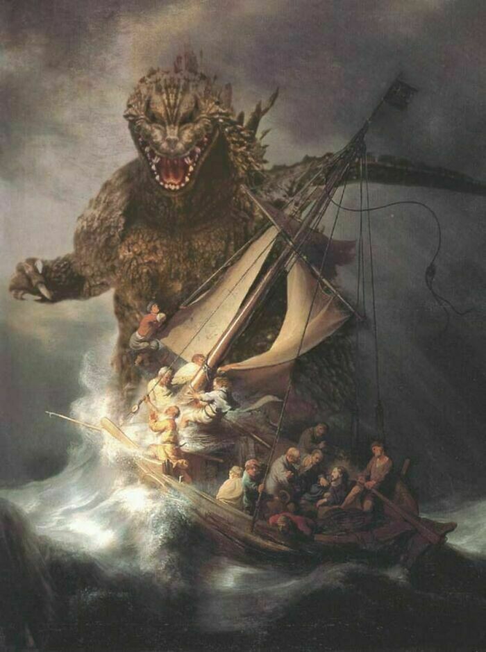 Годзилла напал на корабль и заставил моряков с картины убедиться в том, что есть вещи пострашнее шторма.