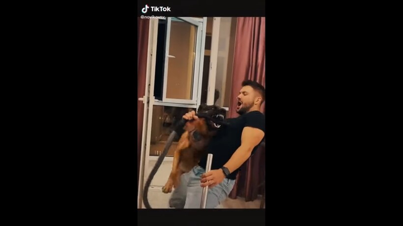 В этом видео, которое вмиг стало вирусным, очень обеспокоенный щенок защищает своего владельца от самого страшного преступника — пылесоса. Владелец захотел разыграть своего питомца, для этого он схватил ручку пылесоса и притворился, что на него нападают. Мужчина прижимает его к своей рубашке и кричит, когда машина «атакует» его. Немецкая овчарка сразу же начинает лаять и кидаться к хозяину. Затем пес бросается к вакуумной головке пылесоса и кусает ее. Только после того, как владелец собаки перестает кричать, милый щенок успокаивается. Затем хозяин начинает смеяться и гладить своего растерянного малыша по голове. Бедное животное на секунду по-настоящему распереживалось. Хороший мальчик встал на защиту своего хозяина.