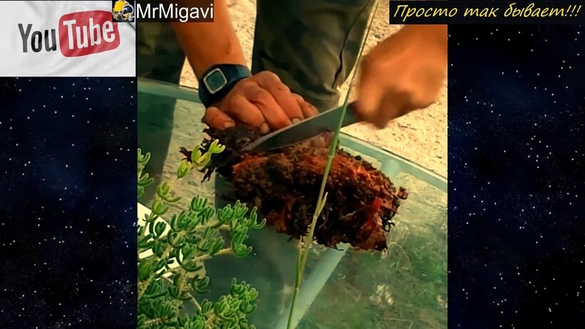 Это существо называется Pyura chilensis и относится к классу морских обитателей. Они похожи на мешки, а среди местных жителей известны как «морские брызги», или «живая скала». Pyura chilensis питается водорослями и микроорганизмами, которых они как бы вдыхают вместе с водой. Пьюра Чиленсис вылавливается в Тихом океане в целях продажи. Рыбаку приходится вырезать замаскированную «живую скалу», в которой прячутся существа, используя острый нож или даже ручную пилу.