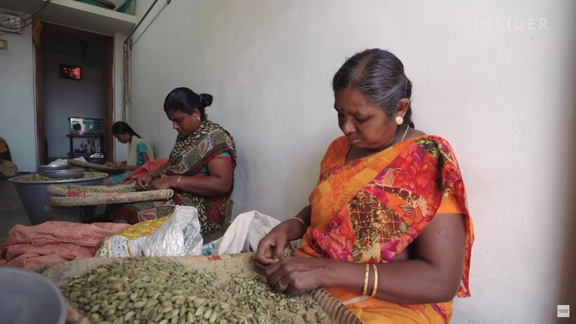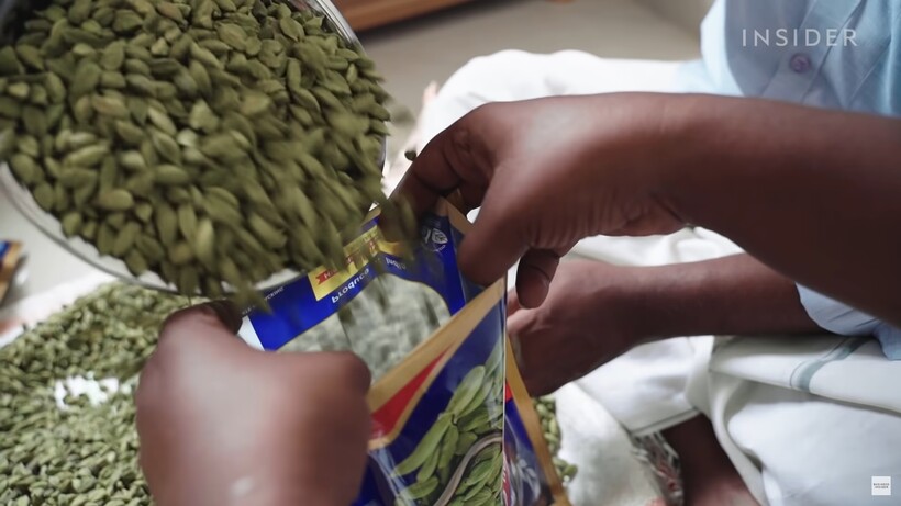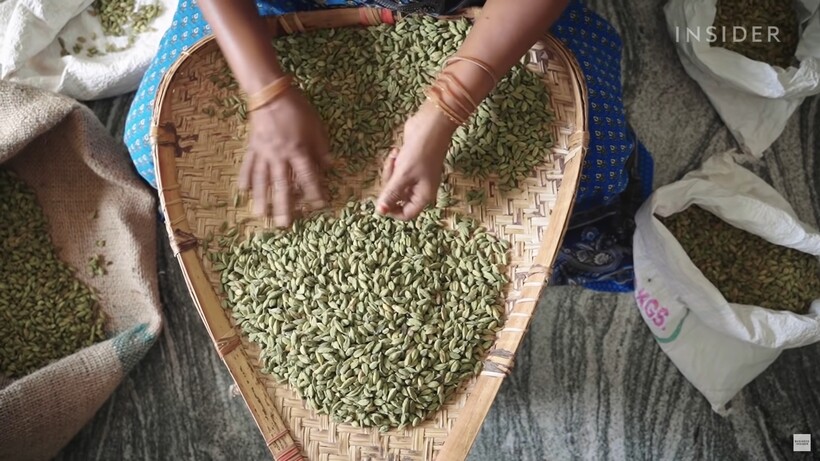Радж говорит, что каждый день сборщики могут принести не более 6 кг стручков, которые помещаются в специальный сушильный шкаф на 18 часов. Там из стручков уйдет лишняя влага, и они не сгниют во время хранения. Но 6 кг превратятся в 1 кг сухих стручков. Затем их перемещают на специальный станок для очистки: сквозь его решетку проходят все мелкие стручки, сор и травинки, оставляя только крупные плоды. Затем их еще раз перебирают вручную, чтобы отобрать самые качественные стручки, не менее 8 мм в длину, ведь в них больше семян и вкуса. Именно они будут паковаться и продаваться как ценный зеленый кардамон по $90 за кило.