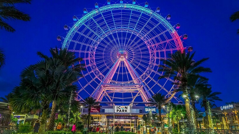 Колесо является частью парка развлечений и дарит невероятный вид на тематические парки Флориды, включая огромный океанариум Sea World Orlando и киностудию Universal со всеми съемочными площадками.