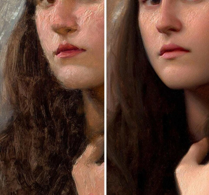 Картина с одним слоем краски и готовое произведение искусства
