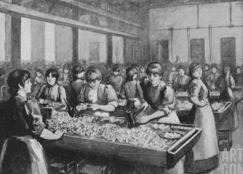 Это были 1830-е годы, и тогда вовсю процветал ручной труд. На фабриках в основном трудились женщины, и их задача была проста ― окунать длинные палочки с двух сторон в жидкий раствор с белым фосфором, смешанным с другими химическими веществами. Палочкам давали высохнуть, а затем их разрезали пополам: готовые спички упаковывали в коробки и отправляли на продажу.
