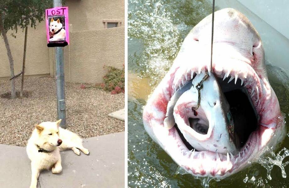 Всегда очень грустно, когда видишь объявление о пропавших питомцах. Но нечасто можно увидеть, чтобы подобное сопровождалось самой собакой. Этот пес спокойно отдыхал на тротуаре под собственным фото, явно не подозревая о том, что его хозяин сходит с ума от волнения. Если вам хочется увидеть больше совпадений, то можно найти их в другом нашем посте.