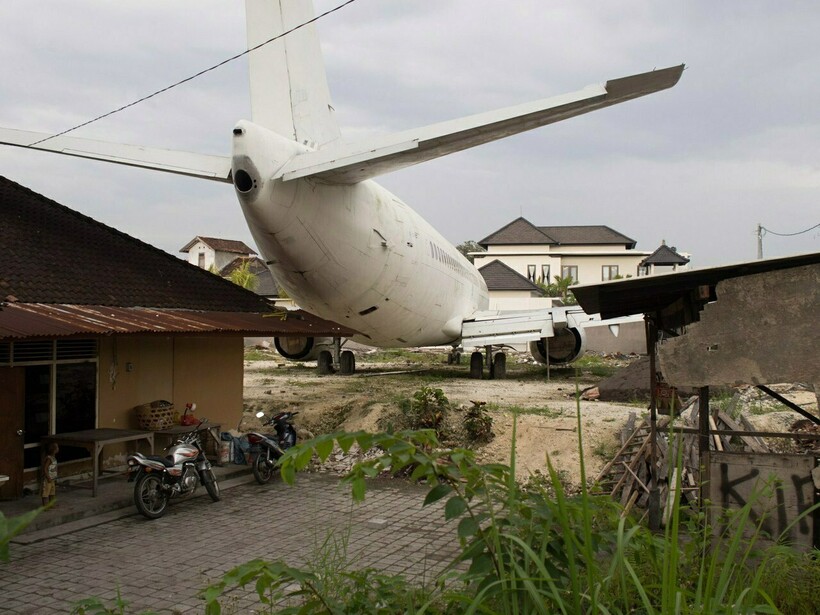 Доподлинно неизвестно, каким образом этот лайнер мог оказаться посредине жилого квартала, однако факт, как говорится, налицо. Некоторые утверждают, что самолет был выкуплен и доставлен в спальный район Бали для того, чтобы оборудовать его под гостиницу, однако отельно-летательный бизнес так и не стартовал. В итоге конструкция так и осталась на месте, радуя местных детишек. Кстати, о том, почему самолеты летают пустыми, мы писали ранее.