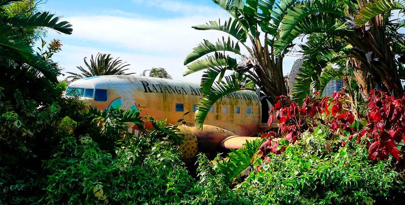 Эта легендарная модель находится посреди цветущих кустов и разнообразной зелени в одном из парков развлечений в ЮАР. Не самое печальное место для выхода на пенсию, где лайнер много лет попросту ржавел и превращался в рухлядь. Некоторое время назад в него решили вдохнуть новую жизнь, отреставрировав внешние конструкции и превратив гиганта в аттракцион.
