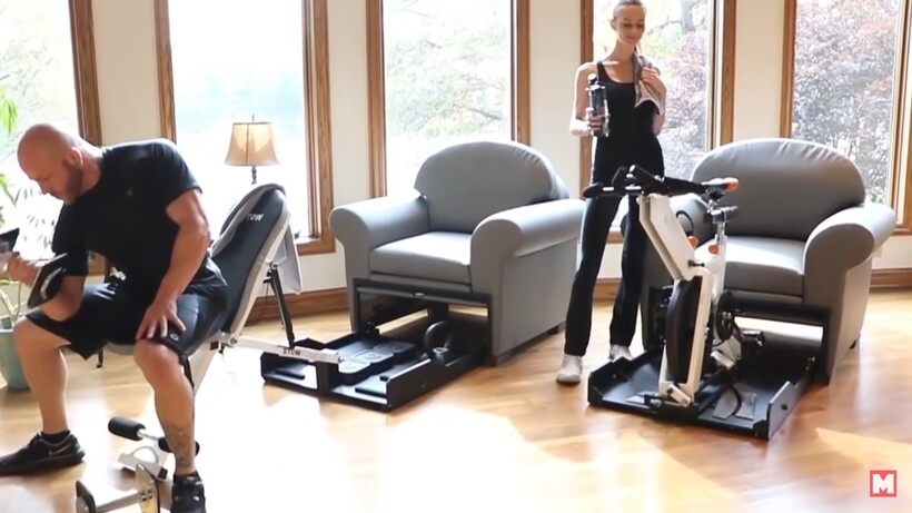 Все мечтают о домашнем тренажерном зале — не надо никуда ходить и платить кучу денег за пользование железками. Но он занимает так много места, что не каждый человек может позволить себе заполнить столько свободного пространства. Но одна пара нашла решение — они изобрели мебель, которая разбирается и легким движением руки превращается в тренажер. Такая вещь тоже явно впечатлит любого гостя.