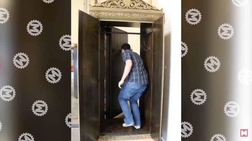 Это интересное дизайнерское решение явно вдохновлено книгой или фильмом «Хроники Нарнии». В ролике демонстрируется красивый резной шкаф, зайдя в который вы обнаружите не потайную комнату, а сканер сетчатки глаза. Он, распознав владельца, открывает дверь в какое-нибудь скрытое помещение, такое как сейф или бункер. Это красивое и одновременно жуткое изобретение. Здесь можно узнать о тайных комнатах, побывать в которых интересно всем.