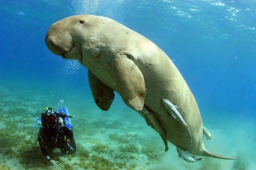 Эти существа похожи на морских коров и относятся к ламантинам. В мире всего пара дюгоней живет в огромном зоопарке Сиднея, Австралия, но больше никто не рискует заводить этих созданий. Дело в том, что эти огромные и добродушные животные целыми днями едят водоросли, не отрывая рта от морского дна, и прокормить их в неволе в сто раз тяжелее, чем обычную корову. Более того, ни один дюгонь в заточении не смог дать потомство, и чтобы популяция не исчезла, люди не ловят этих зверей.
