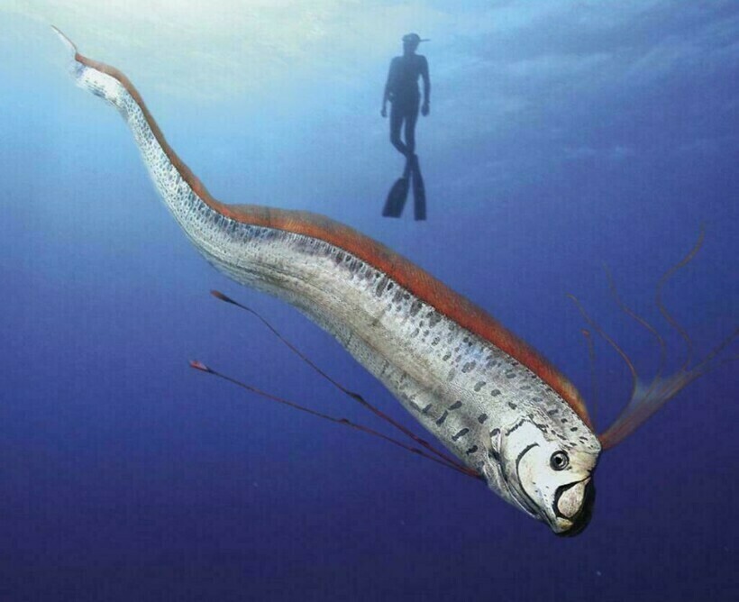 Эта рыба, похожая на огромный серебристый ремень, плавает на большой глубине тропических морей, где ее тяжело найти. Длина одной особи может превышать 3,5 метра, а потому ее нелегко поймать. Но и это не проблема для современных океанариумов. Главная дилемма в том, что сельдяной король не может жить в неволе: он отказывается от еды и погибает через несколько дней, из-за чего люди прекратили попытки его поимки. А вы знаете, что эти рыбы могут предсказывать цунами?