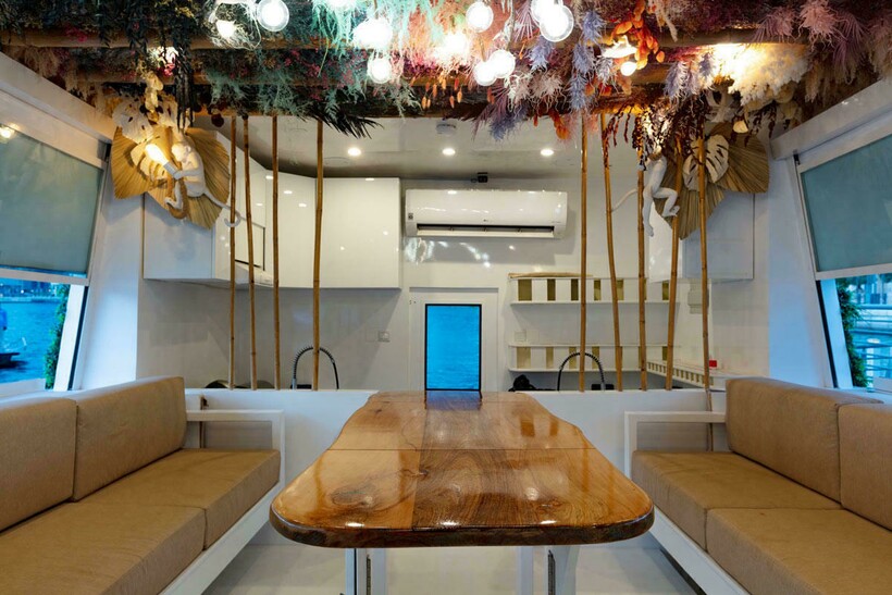 Что касается ее оборудования, то водная платформа оснащена всем необходимым. В свои 45 квадратных метров она вмещает и уютную гостиную, и хорошо обставленную кухню, и комфортабельную обеденную зону, и обширную ванную. Но это еще не все, AP EX1 также имеет красивую террасу и гидроцикл.