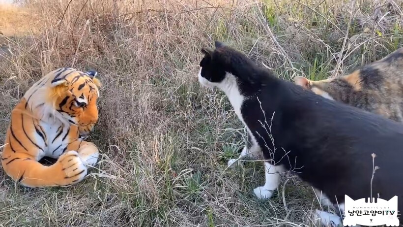 Затем мужчина повторяет свой эксперимент, но уже не только с Содам, но и с котом Декои, которых он подводит прямо к игрушке. Животные озадачены неведомым зверем-игрушкой. Но Декои будто понимает, что тигр плюшевый, и проходит мимо. А Содам начинает притворяться, что не слышит, как ее зовет хозяин. Она опять странно смотрит на игрушку и вертит головой во все стороны, как будто никак не может додуматься. А затем кошка притворяется, что ее кто-то позвал, и опять быстренько убегает. Затем автор видео приводит еще одного кота — Микки, который решительно идет к игрушке с распушившимся хвостом. А в конце уже четыре кота исследуют игрушку, нюхая и трогая ее лапами. Здесь можно посмотреть видео с реакцией котов на искусственного сородича.