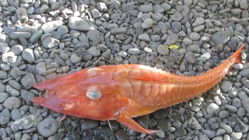 Это причудливое морское животное сбило с толку рыбаков после того, как они нашли его у побережья Дарвина, Австралия. Таинственный зверь, похожий на слияние рыбы с креветкой, был пойман недалеко от морской границы с Индонезией. Скользкая, с рогами, шипастыми жабрами и большими глазными яблоками рыба была не похожа на то, что эти люди видели раньше. Однако морским экспертам не потребовалось много времени, чтобы идентифицировать животное как бронированную морскую малиновку. Это редкий вид рыб, обитающий глубоко в тропических водах. Относится к семейству скорпенообразных. Их чешуя, шипы и выступающие усики на подбородках делают породу необычной. Это существо редко можно встретить на морском дне, где оно добывает пищу, используя свои модифицированные плавники. Недавно снимки морской малиновки, прогуливающейся по океанскому дну, были сделаны биологами на борту корабля Национального управления океанических и атмосферных исследований. О таких же удивительных морских находках мы писали здесь.