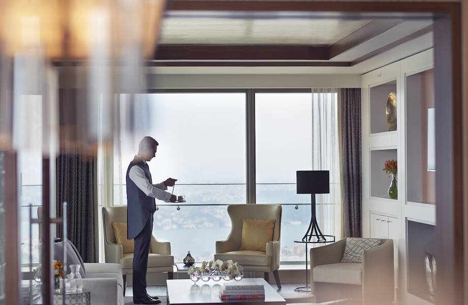 Виды на Босфор, Принцевы острова и старый город, открывающиеся из отеля, по красоте не имеют себе равных. Удобное расположение, близость к историческим достопримечательностям и ведущим бутикам мира торгового и культурного центра Zorlu, возможность посещать элитные рестораны и легендарный сервис батлеров делают отель самым востребованным в Стамбуле.