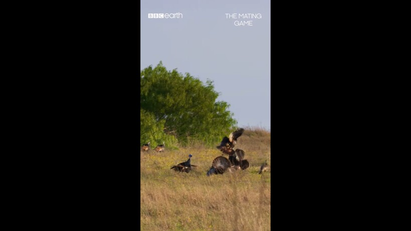 На самом деле, в видеоролике ниже вы можете наблюдать за тем, как три индюка-самца пытаются привлечь внимание самок. Они бегут ровным строем, пытаясь показать себя с лучшей стороны. Это не очень впечатляет самок, и индюки идут на крайние меры. Имитируя настоящий бой, они подпрыгивают, сталкиваются и изо всех сил пытаются доказать самкам, насколько они опасные и сильные. Ковбойская музыка превратила обычные брачные игры индюков в вестерн. А вам нравятся вестерны?